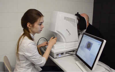 Для первичной диагностики офтальмолог использует световую (щелевую) лампу. Также проводится осмотр глазного дна, полей зрения, измеряется острота зрения и внутриглазное давление. Таким образом, в рамках первого амбулаторного посещения пациент получает исчерпывающую информацию об остроте своего зрения, рекомендации врача, а главное — прогноз лечения.